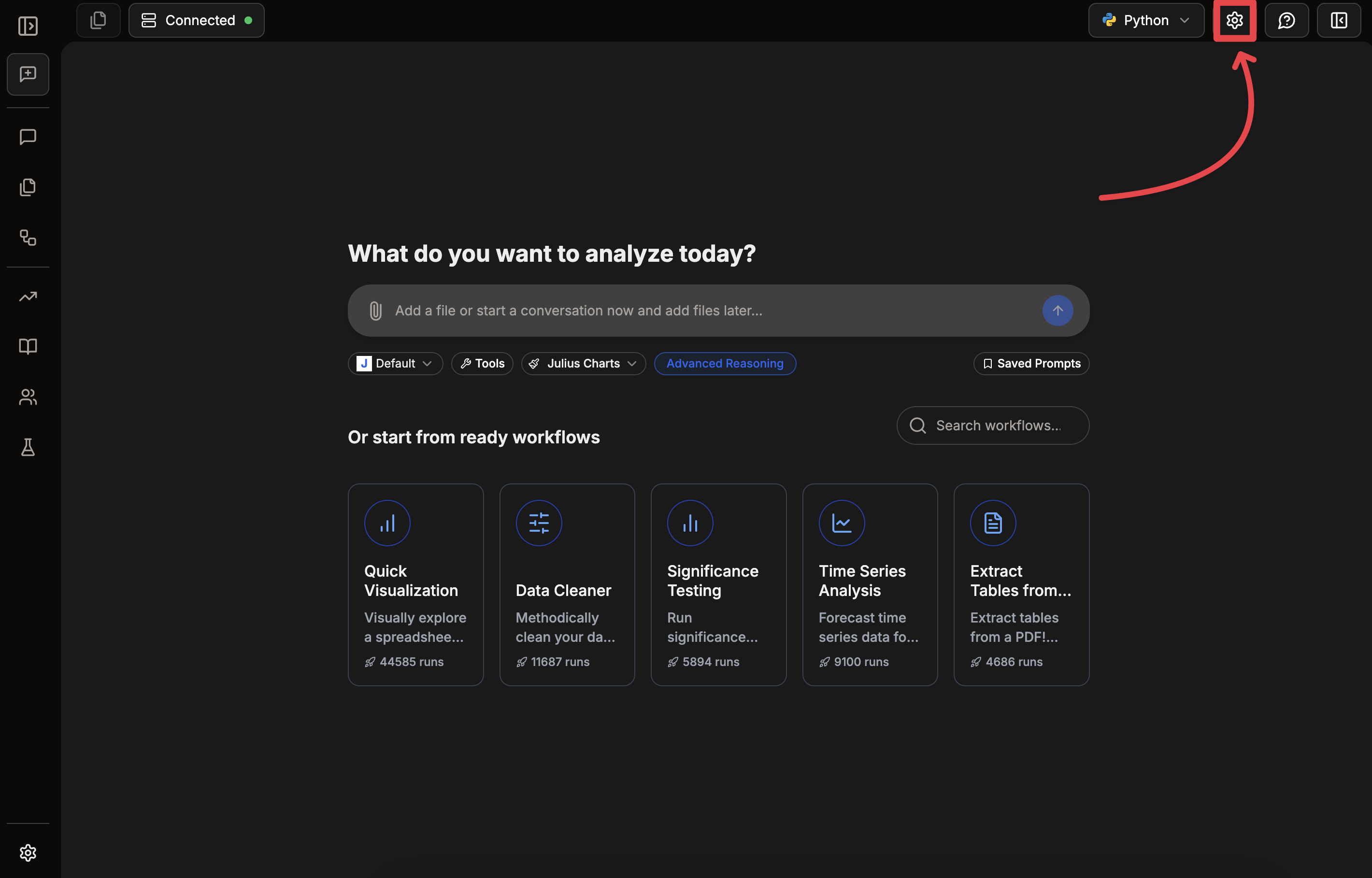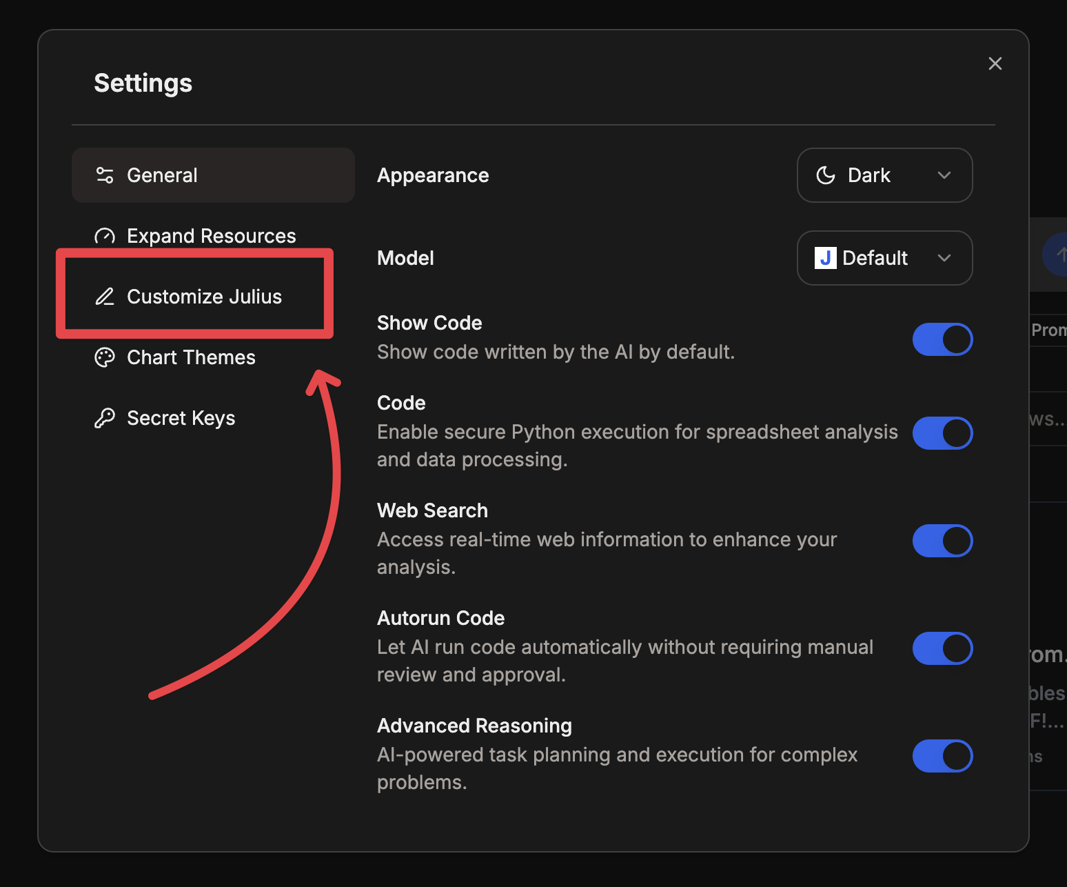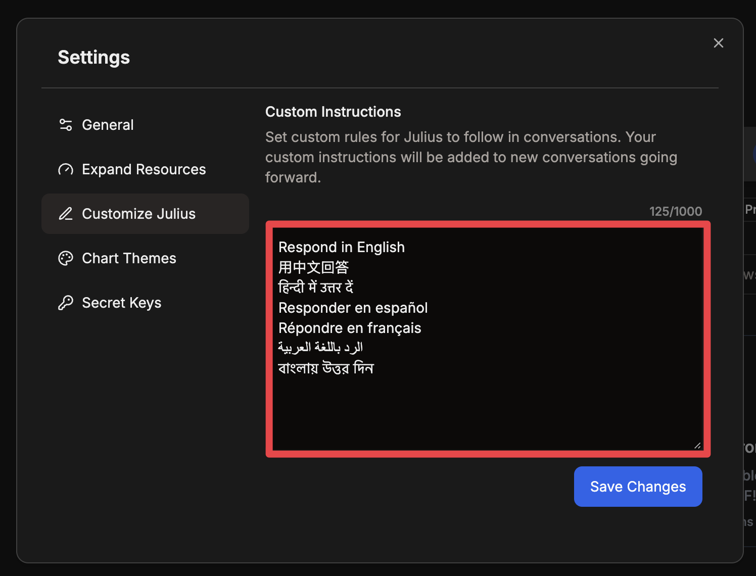 Specify the language you would like Julius to reply to by typing your command into the instructions box.